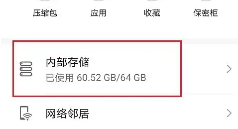 2、然后选择内部存储