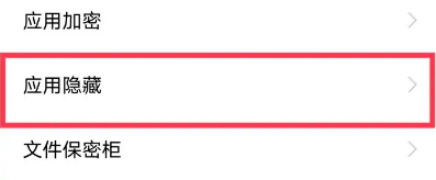 2、点击隐私安全中的应用隐藏选项。
