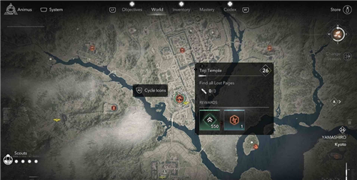 本篇为大家分享刺客信条影山城地区东寺的失落的卷页的收集位置,东寺位于京都,这里一共有3个失落的卷页。