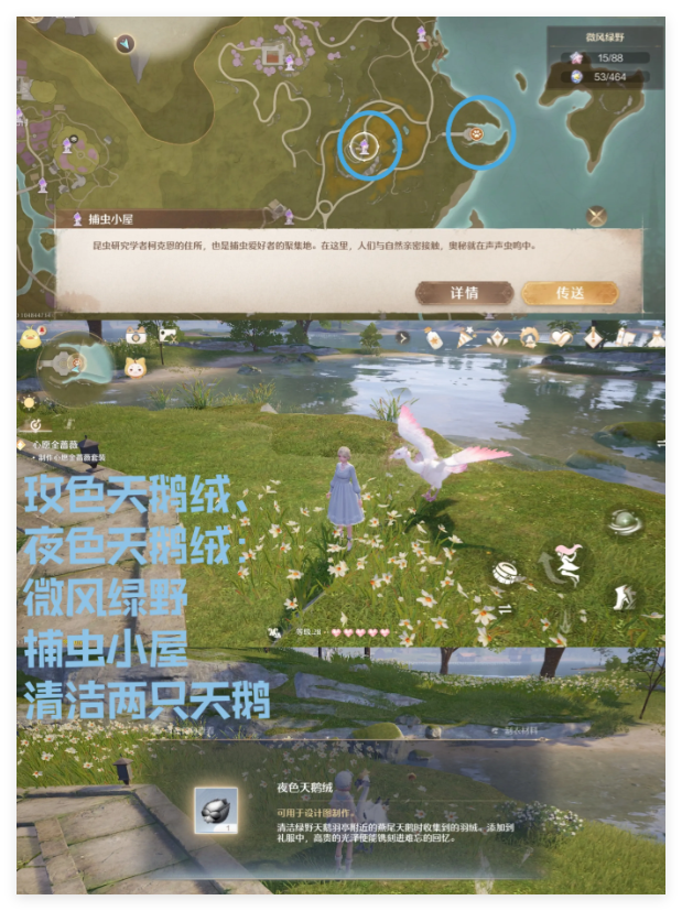 微风绿野——捕虫小屋——清洁燕尾天鹅和玫冠天鹅(等上岸了才可以清洁)