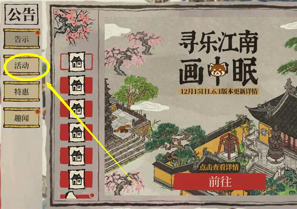 2、然后从公告里面进入活动界面;