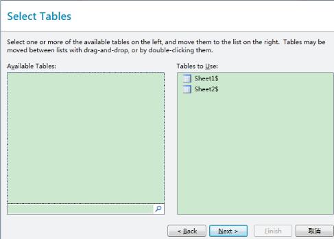 3、本文以含有两个工作表的Excel为例,双击添加这两个工作表至右侧所需表格栏中,单击下一步。