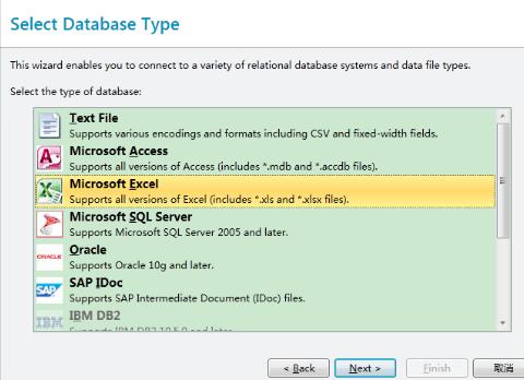 1、在BarTender里,单击工具栏中的数据库连接设置按钮。打开数据库连接向导。选择数据库类型Excel,单击下一步。
