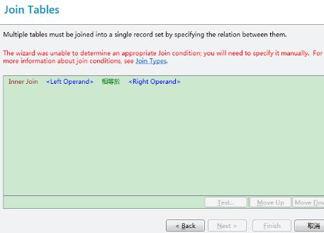 上述Excel多个工作表的连接,前提必须是每个工作表中都有相关联的列,让系统能够自行匹配,否则将无法连接,弹出错误。