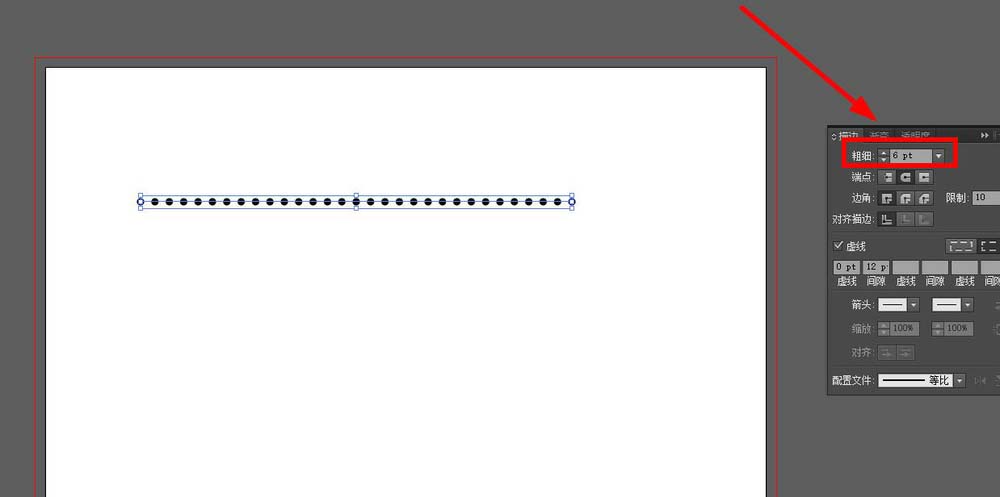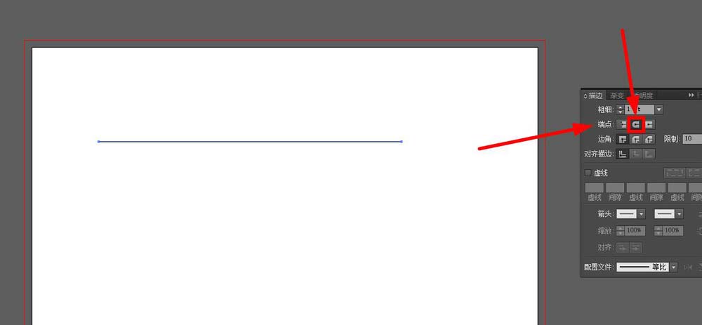 在“描边”窗口中,端点改为“圆头端点”,如图所示位置
