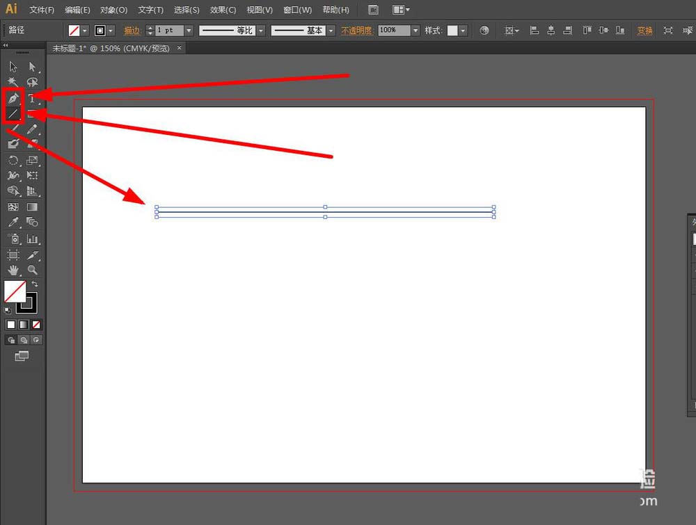 用“直线工具”,或是“钢笔工具”画一条线,如图画了一条直线