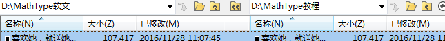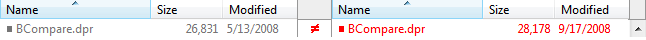 2、在下面例子里,右侧的文件被设为红色表明它们是较新的文件。中间列的图标显示内容比较。