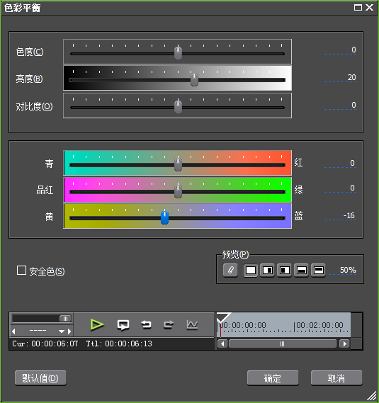 3、双击“色彩平衡”,打开设置窗口,首先调整亮度,耐心地一点点加减,直到视频亮度看起来正常为止;