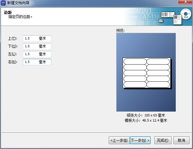 根据需要输入标签上下左右的边距,单击下一步;