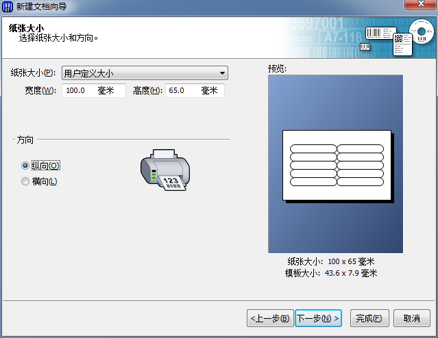 在“纸张大小”下拉框中选择“用户定义大小”,输入纸张的宽度和高度,单击下一步;
