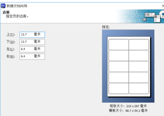 下一步设置标签到边的距离,下图是A4的默认的值,也可以根据需要设置。